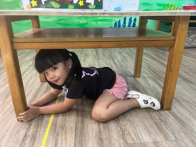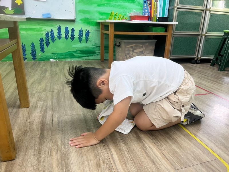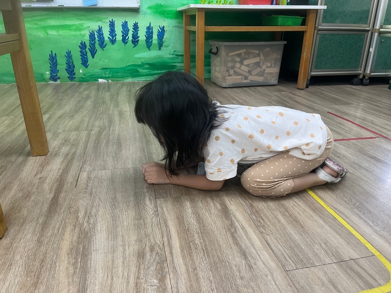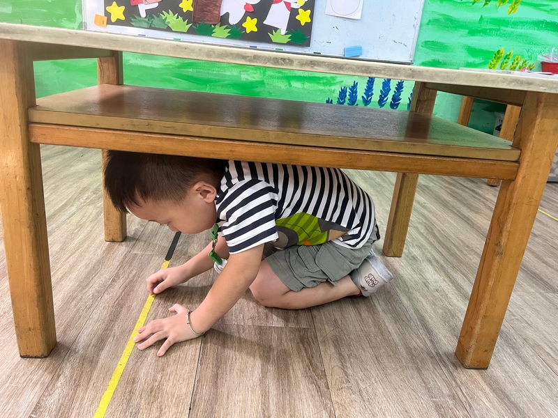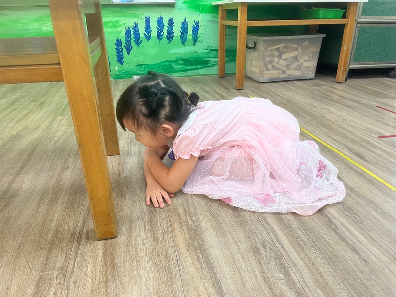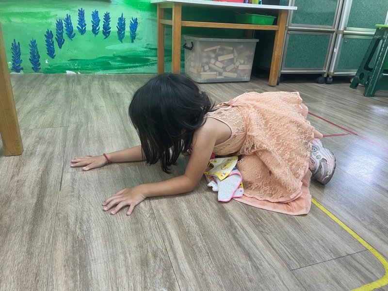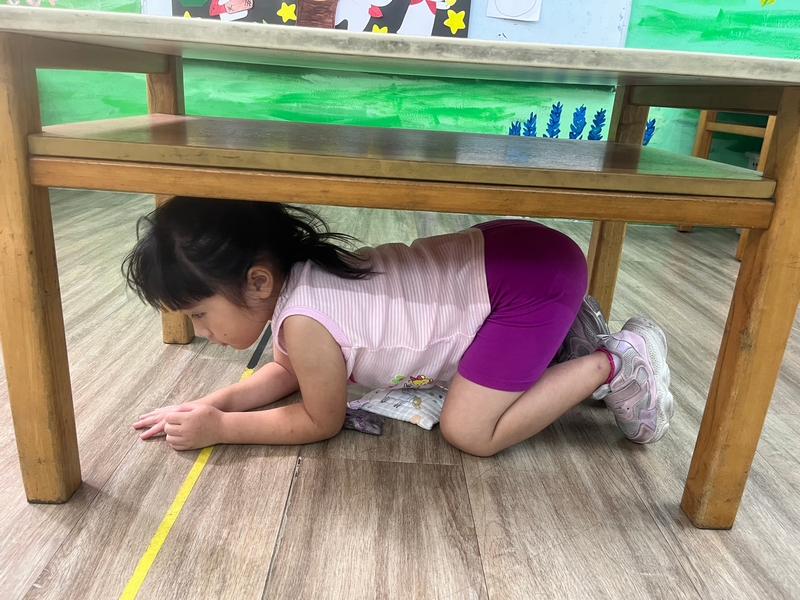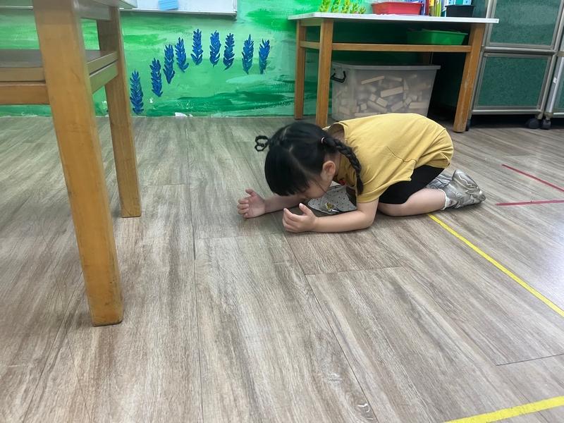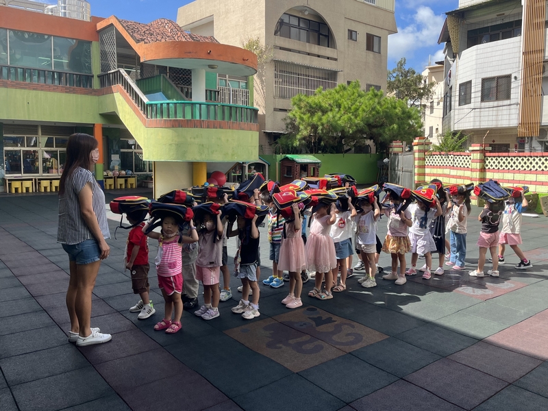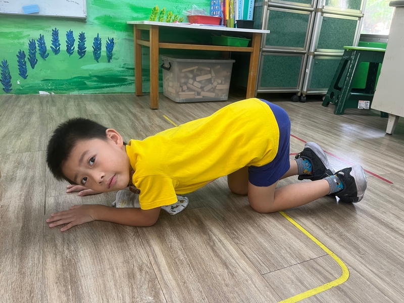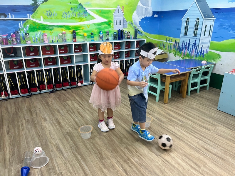 讓孩子戴上各種不同球的頭套,依照頭套上的圖案去找出正確的球。並依球的運動方式,表現出來;例如:足球就用腳踢,孩子很棒都能一一地做出動作來唷!