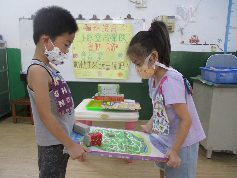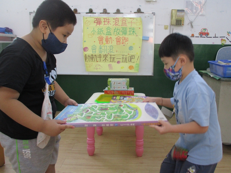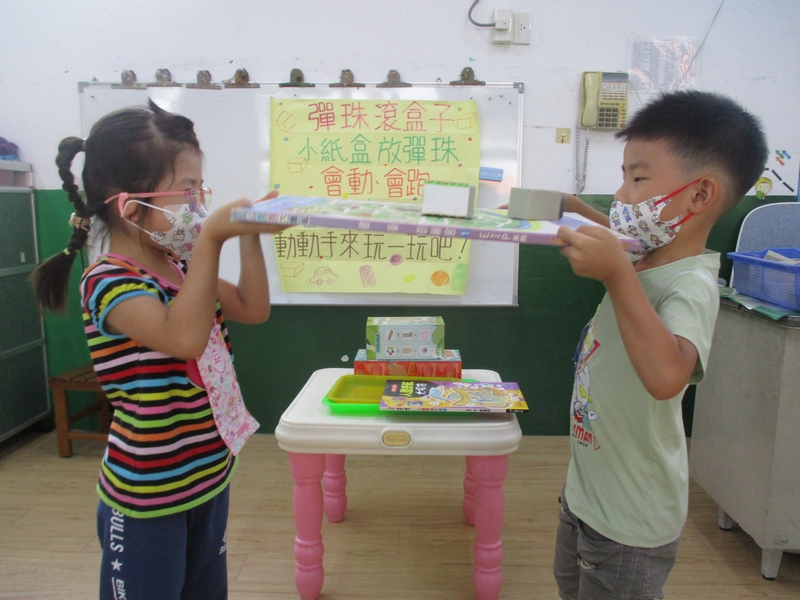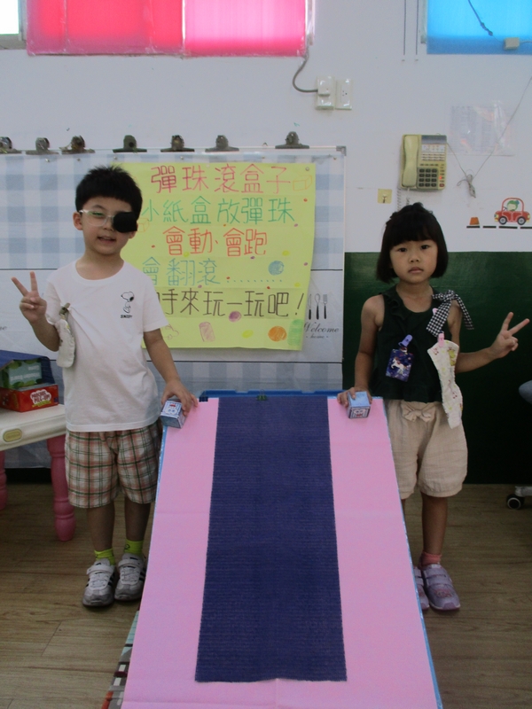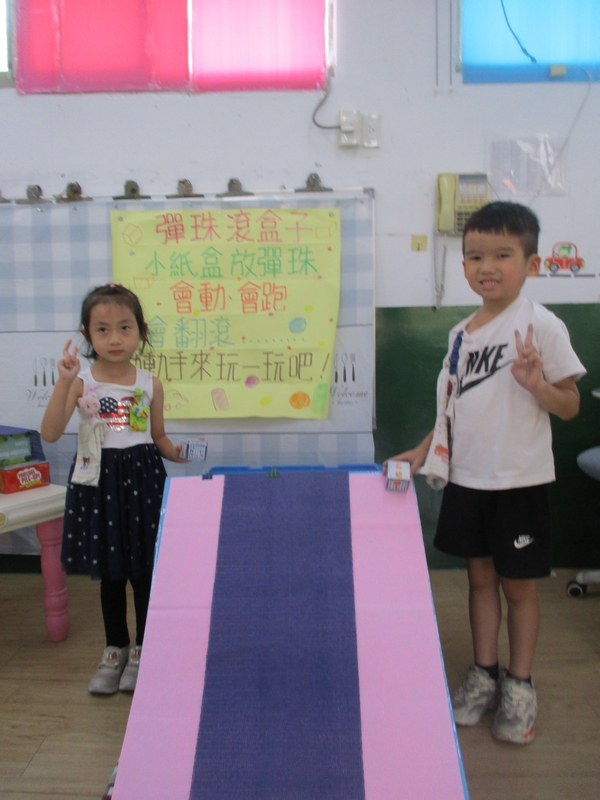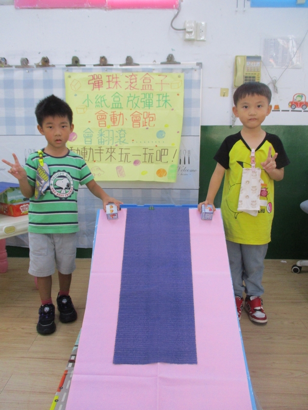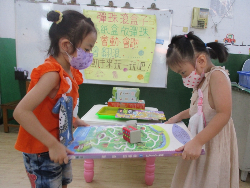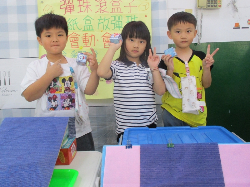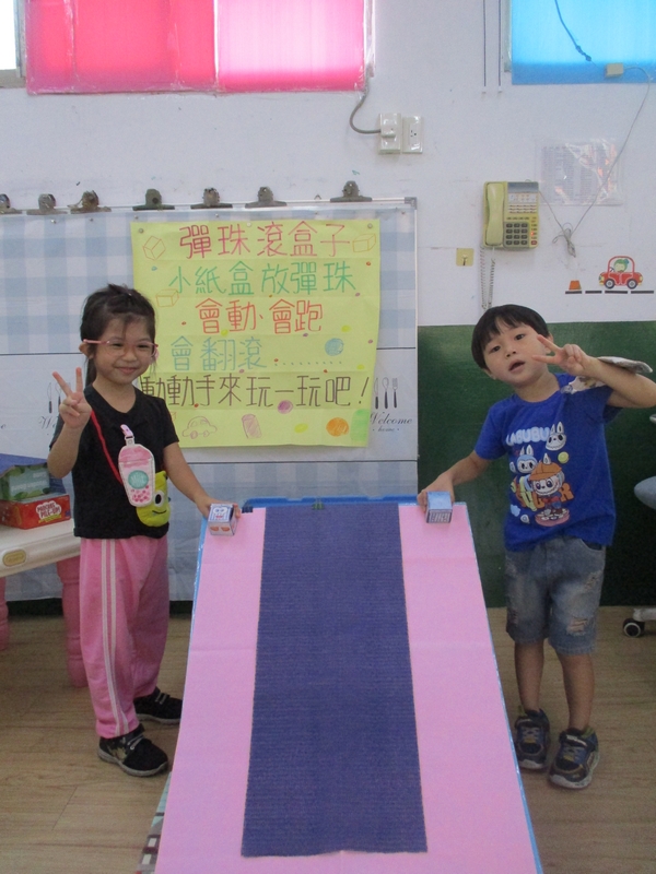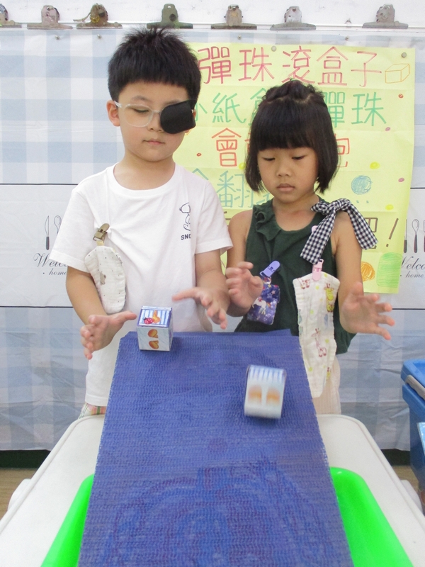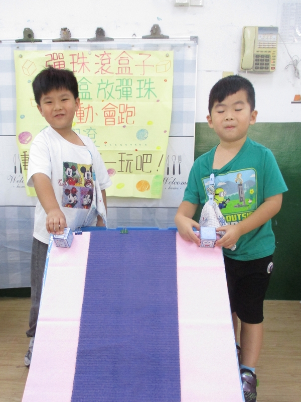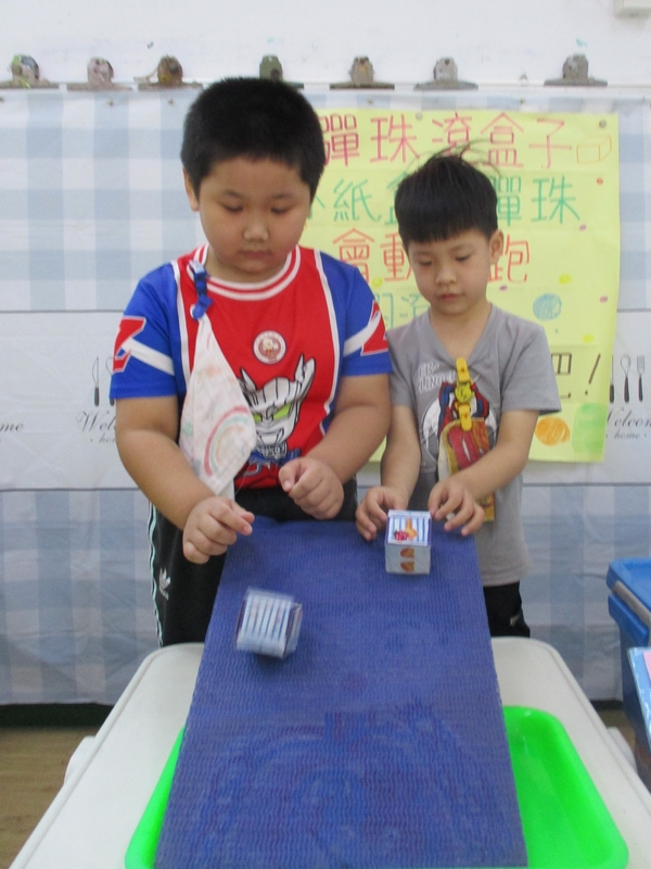藉由幼兒紙盒DIY,裝進彈珠後,來體驗操作「滾動與滑動」的實驗活動!